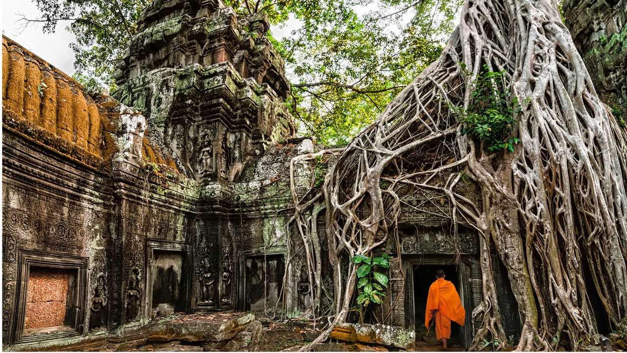 Bạn có thể chiêm ngưỡng Angkor Thom với loạt các công trình cổ xưa, bao gồm cả đền Bayon và những khuôn mặt đá nổi tiếng. Hoặc cũng có thể tham quan Ta Prohm với những rễ đa kỳ dị từng xuất hiện trên phim Tomb Raider. Xa hơn về phía Bắc Campuchia là ngôi đền Hindu Preah Vihear, nằm trên đỉnh vách đá 525 m ở dãy núi Dangrek.