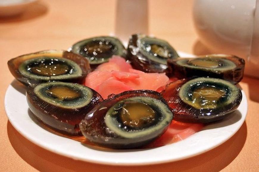 Trứng nghìn năm (trứng thế kỷ, trứng bách nhật) được một nông dân ở thời nhà Minh tình cờ phát hiện khi đi làm đồng. Quả trứng được bảo quản nguyên vẹn dưới lớp bùn lầy và vôi, trấu. Sau vài tháng, lòng đỏ sẽ trở thành màu xanh lục đậm, xám, có vị của kem pha lẫn mùi lưu huỳnh và amoniac. Lòng trắng trở thành màu cam, hoặc nâu đậm có vị hơi mặn.